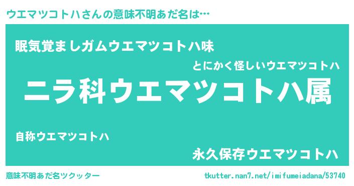 | 料理風あだ名 | 『ウエマツコトハとほうれんそうの和風グラタン』 |