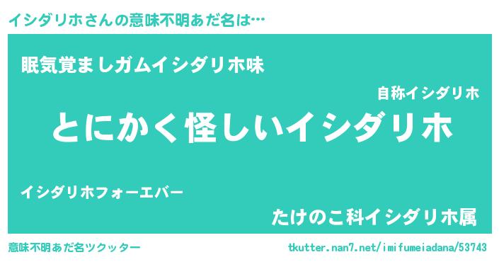 | 男性向けラノベタイトル風あだ名 | 『イシダリホの嫁は女の子じゃないと思った?』 |