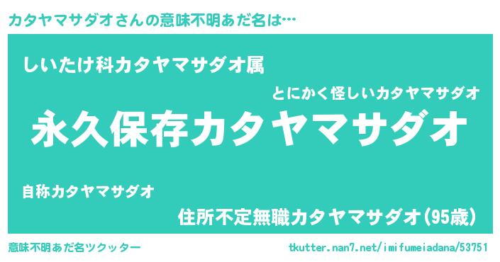 | ヒーロー風カッコイイあだ名 | 『ネオカタヤマサダオ』『仮面カタダー』 |