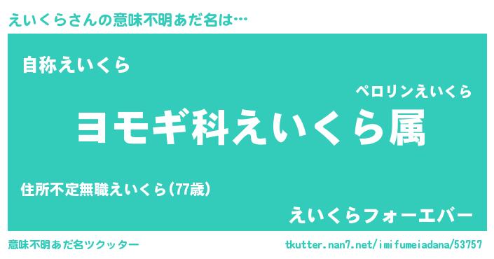 | 男性向けラノベタイトル風あだ名 | 『えいくら~年齢イコール彼女いない歴の魔法使い~』 |