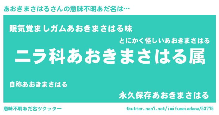 | ヘコむあだ名 | 『あおきまさはる(小並感)』『あおっぺ』 |