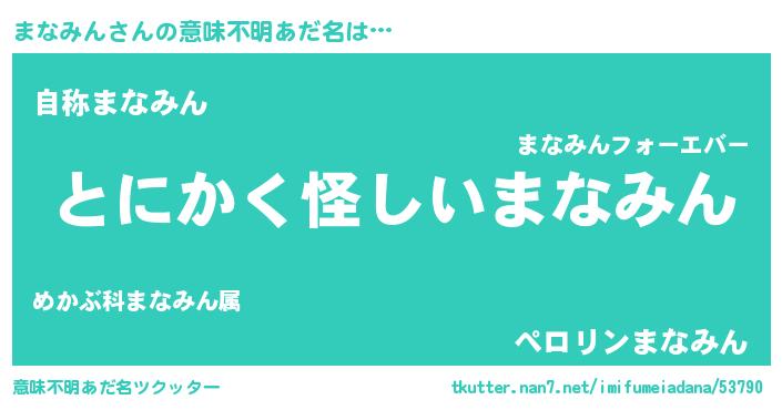 | 男性向けラノベタイトル風あだ名 | 『ダンジョンにまなみんを求めるのは間違っているだろうか』 |