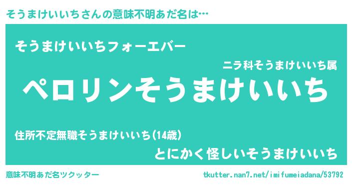 | 欧米人風あだ名 | 『マイケルそうまけいいち』 |