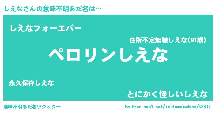 | 欧米人風あだ名 | 『マイケルしえな』『しえなクリステル』 |