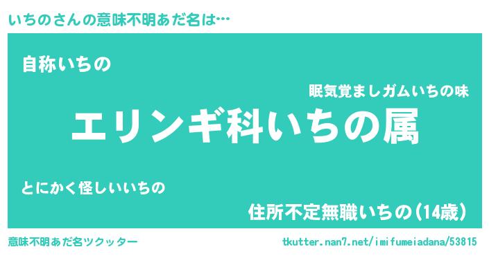 | 男性向けラノベタイトル風あだ名 | 『イチノスレイヤー』『魔弾の王といちの』 |