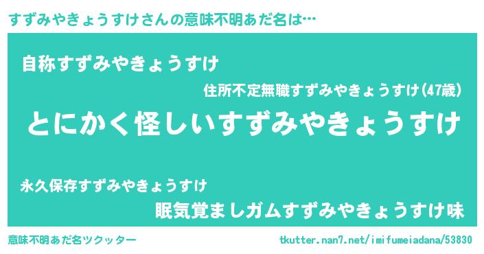 | ポケモン風あだ名 | 『ヒスズミヤキョウスケ』『スズセウス』 |