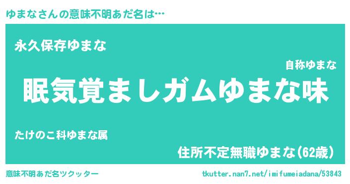 | ヘコむあだ名 | 『ゆまな(苦笑)』『ゆま太郎』『豆乳』 |