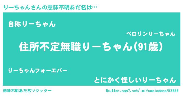 | 男性向けラノベタイトル風あだ名 | 『この素晴らしい世界にりーちゃんを!』 |