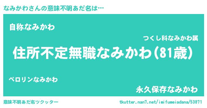 | ヒーロー風カッコイイあだ名 | 『仮面ナミダー』『ウルトラ戦士ナミカワ』 |