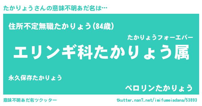 | 男性向けラノベタイトル風あだ名 | 『タカリョウスレイヤー』 |