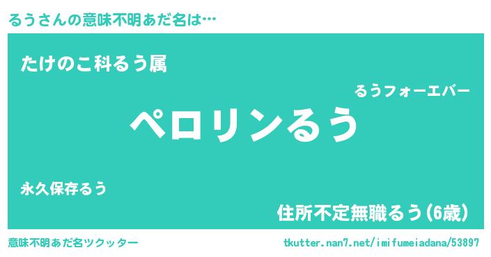 | 男性向けラノベタイトル風あだ名 | 『るうの憂鬱』『はたらくるうさま!』 |