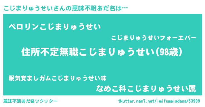 | 恥ずかしいあだ名 | 『プリティーこじまりゅうせい』 |