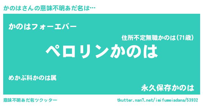 | ヒーロー風カッコイイあだ名 | 『スーパーカノハ』『ウルトラかのはマン』 |