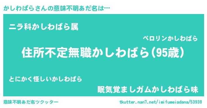| 欧米人風あだ名 | 『かしわばら・ステッグマイヤー』 |