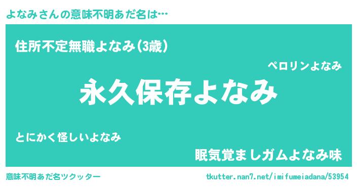 | 胡散臭い通販商品みたいなあだ名 | 『前代未聞の健康食品…その名も「よなみ」』 |