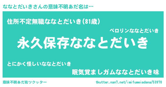 | ヒーロー風カッコイイあだ名 | 『ネオナナトダイキ』『仮面ナナダー』 |