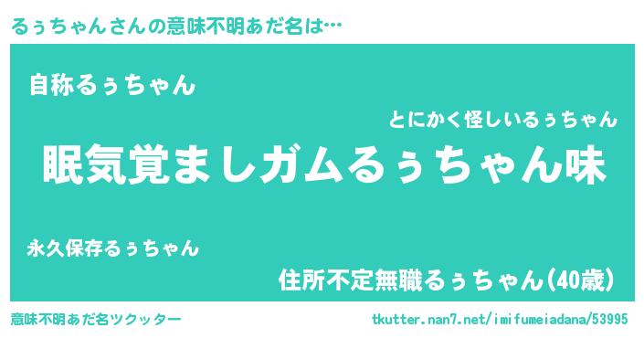 | ヘコむあだ名 | 『るぅっ子』『るぅちゃん(苦笑)』 |