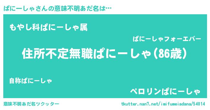 | 男性向けラノベタイトル風あだ名 | 『この素晴らしい世界にぱにーしゃを!』 |