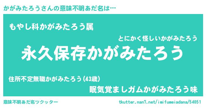| 伝説のあだ名 | 『古文書に記された暗殺者かがみたろう』 |