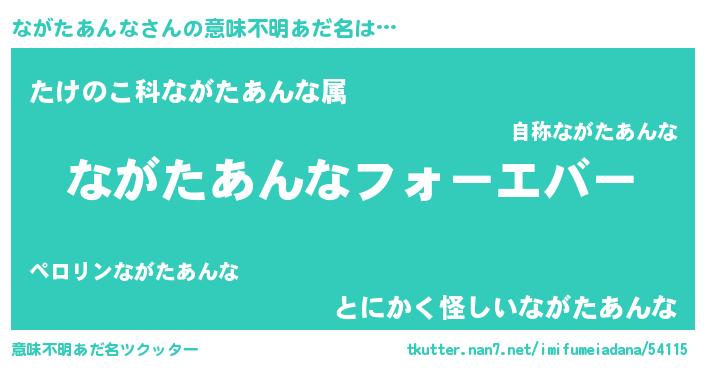 | 男性向けラノベタイトル風あだ名 | 『やはりながたあんなの青春ラブコメはまちがっている 』 |