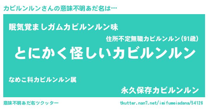 | 男性向けラノベタイトル風あだ名 | 『ダンジョンにカビルンルンを求めるのは間違っているだろうか』 |