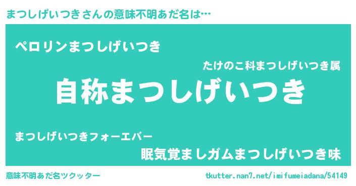 | 男性向けラノベタイトル風あだ名 | 『Re:まつしげいつきから始める異世界生活』 |