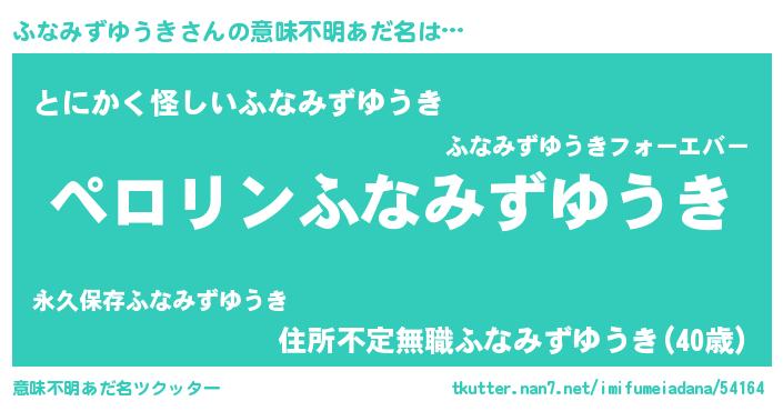 | 男性向けラノベタイトル風あだ名 | 『ふなみずゆうきの憂鬱』 |
