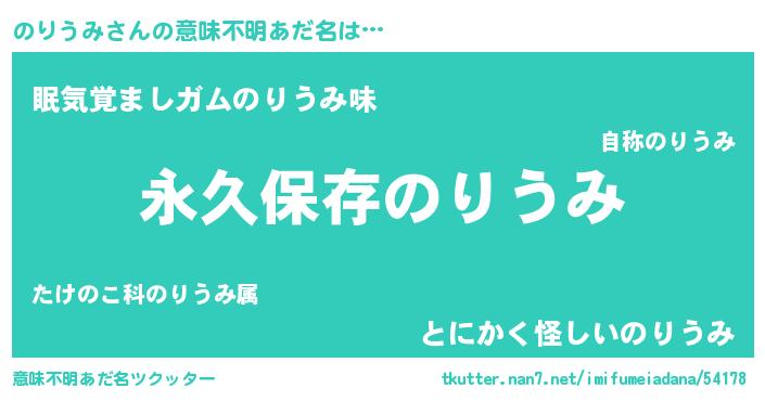 | 男性向けラノベタイトル風あだ名 | 『のりうみという概念が存在しない退屈な世界 』 |