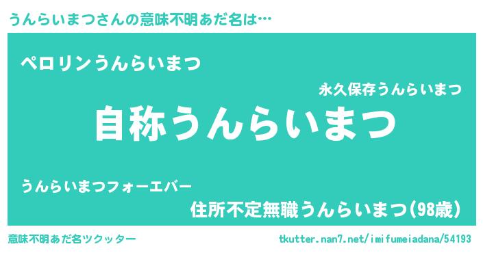 | 肩書あだ名 | 『うんらいまつ閣下』『うんらいまつCEO』 |