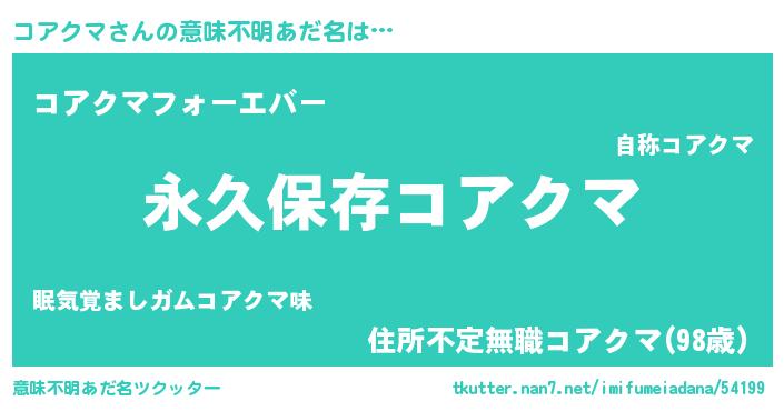 | 胡散臭い通販商品みたいなあだ名 | 『絶対に幸福をもたらす水素水…その名も「コアクマ」』 |