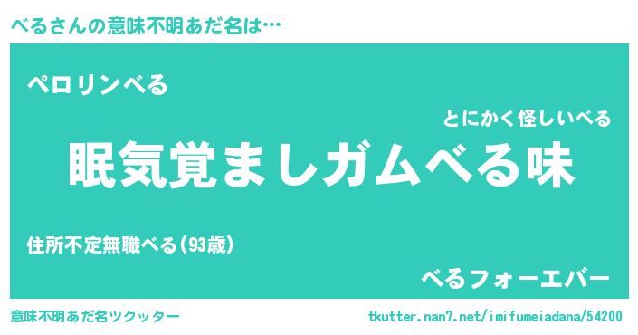 | 料理風あだ名 | 『べるのトマト煮』『べるの炊き込みご飯』 |
