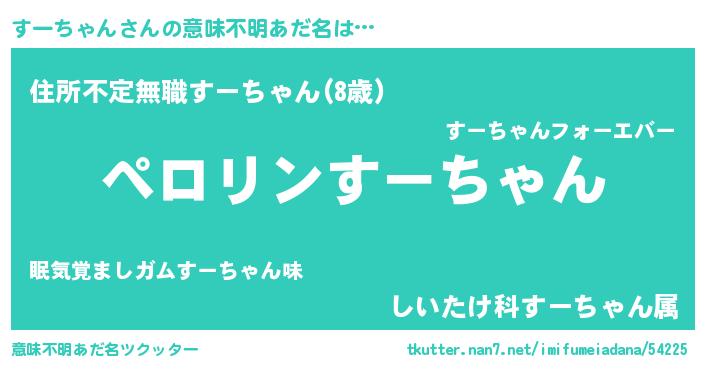 | 男性向けラノベタイトル風あだ名 | 『すーちゃんに滅ぼされるだけの簡単なお仕事です』 |