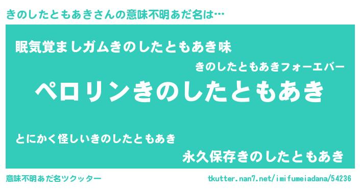 | 男性向けラノベタイトル風あだ名 | 『きのしたともあきの憂鬱』 |