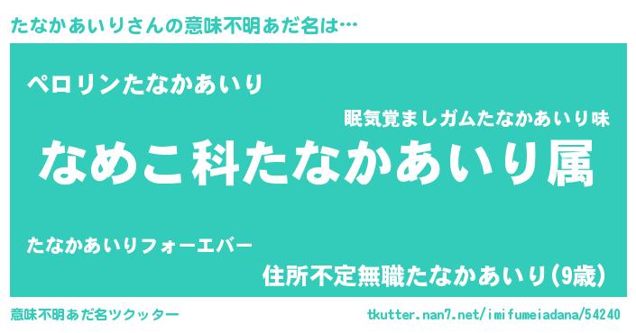 | 男性向けラノベタイトル風あだ名 | 『転生したらたなかあいりだった件』 |