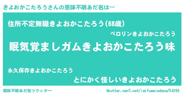 | 男性向けラノベタイトル風あだ名 | 『おまえをオタクにしてやるから、俺をきよおかこたろうにしてくれ! 』 |