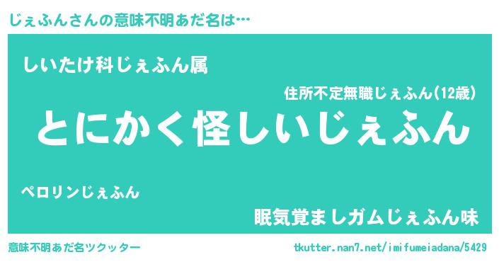 | 男性向けラノベタイトル風あだ名 | 『じぇふんの嫁は女の子じゃないと思った?』 |