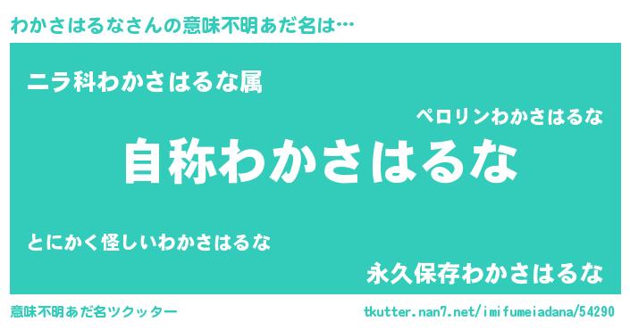 | 男性向けラノベタイトル風あだ名 | 『Re:わかさはるなから始める異世界生活』 |