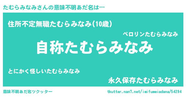 | 男性向けラノベタイトル風あだ名 | 『Re:たむらみなみから始める異世界生活』 |