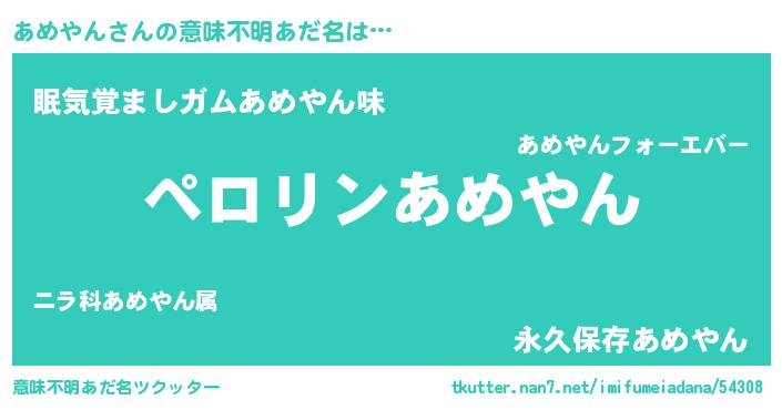 | 男性向けラノベタイトル風あだ名 | 『アメヤンアートオンライン』 |