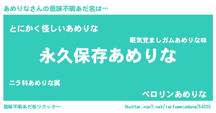 | ヘコむあだ名 | 『あめりな(笑)』『あめぷりん』 |