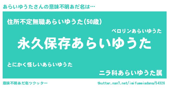 | ヘコむあだ名 | 『あらいゆうた(笑)』『あらっふぃ~』 |