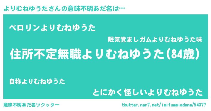 | 胡散臭い通販商品みたいなあだ名 | 『世界中を虜にした世界で10本だけ現存している希少なブランデー…その名も「よりむねゆうた」』 |