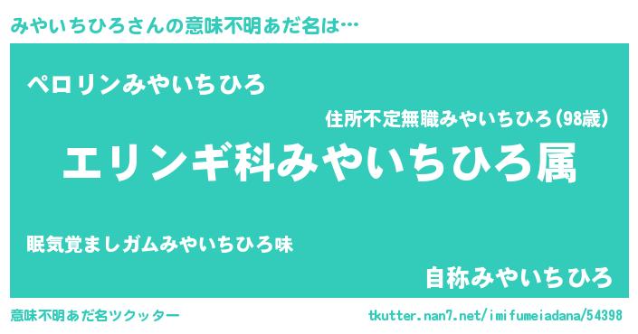 | 欧米人風あだ名 | 『アンジェラ・みやいちひろ』 |