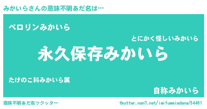 | ヘコむあだ名 | 『みかいら(苦笑)』『みかふぇ~』 |