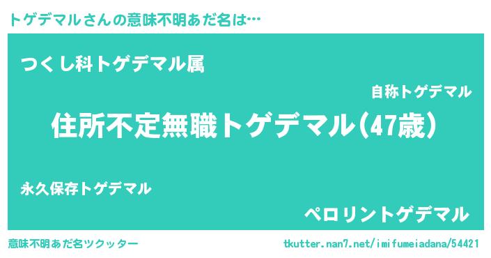 | 男性向けラノベタイトル風あだ名 | 『この素晴らしい世界にトゲデマルを!』 |