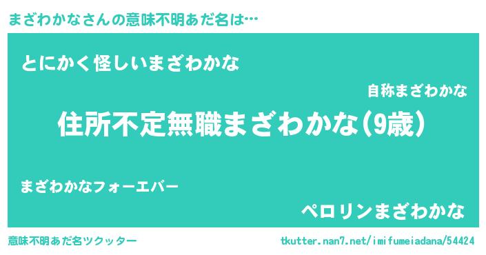 | 男性向けラノベタイトル風あだ名 | 『魔弾の王とまざわかな』 |