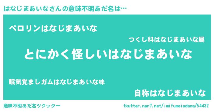 | ポケモン風あだ名 | 『ヒハナジマアイナ』『メロハッナ』 |
