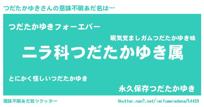 | 男性向けラノベタイトル風あだ名 | 『つだたかゆき~年齢イコール彼女いない歴の魔法使い~』 |