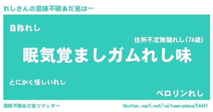 | 男性向けラノベタイトル風あだ名 | 『ノーゲーム・ノーレシ』『れしの憂鬱』 |