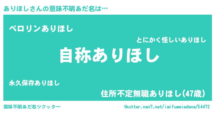 | 男性向けラノベタイトル風あだ名 | 『Re:ありほしから始める異世界生活』 |